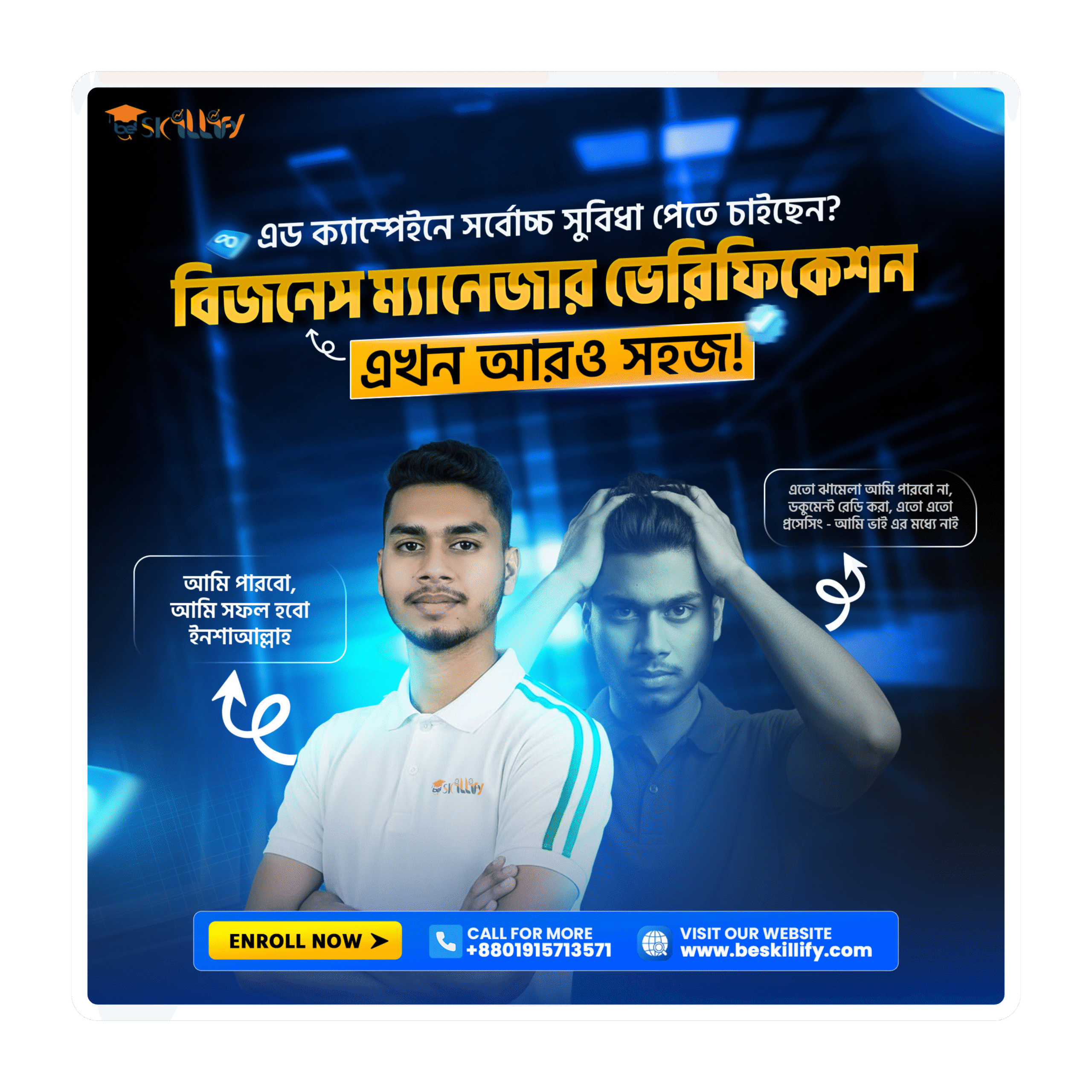 যাদের বিজনেস ম্যানেজার ভেরিফিকেশন নিয়ে ভয় আছে, তারা এই কোর্সটা নিতে পারেন। আমি নিজে শিখেছি এবং এখন অন্যদেরও সাহায্য করতে পারি। ডকুমেন্ট তৈরি থেকে শুরু করে প্রতিটি ধাপ খুব সুন্দরভাবে শেখানো হয়েছে।